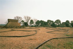 国指定史跡である三殿台遺跡からは、縄文・弥生・古墳の各時代合わせて250戸以上の竪穴住居址や大量の土器・石器などの遺物が発見されました。横浜市三殿台考古館は、遺跡の保存・公開を目的とした施設です。